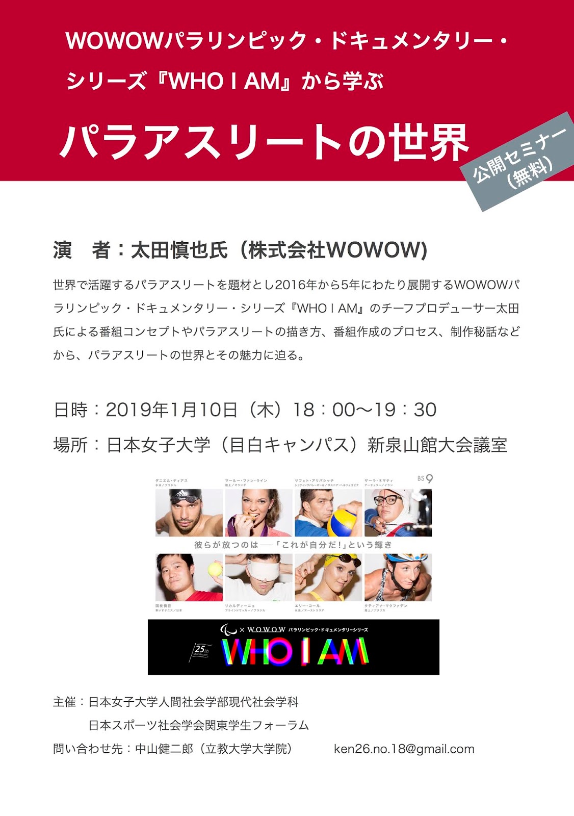 さて、この度日本スポーツ社会学会関東学生フォーラムでは、3月に開催されます日本スポーツ社会学会第27回大会において開催される学生シンポジウムにご登壇を頂く太田慎也様(株式会社WOWOW)をお招きし、日本女子大学人間社会学部現代社会学科と共催で、公開セミナーを開催させて頂く運びとなりました。