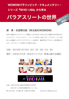 2020年東京パラリンピックが迫るなか、IPCと株式会社WOWOWの共同プロジェクトであるドキュメンタリー・シリーズ『WHO I AM』チーフプロデューサーの太田様によるご講演から、パラアスリートの世界について理解を深める機会となれば幸いでございます。